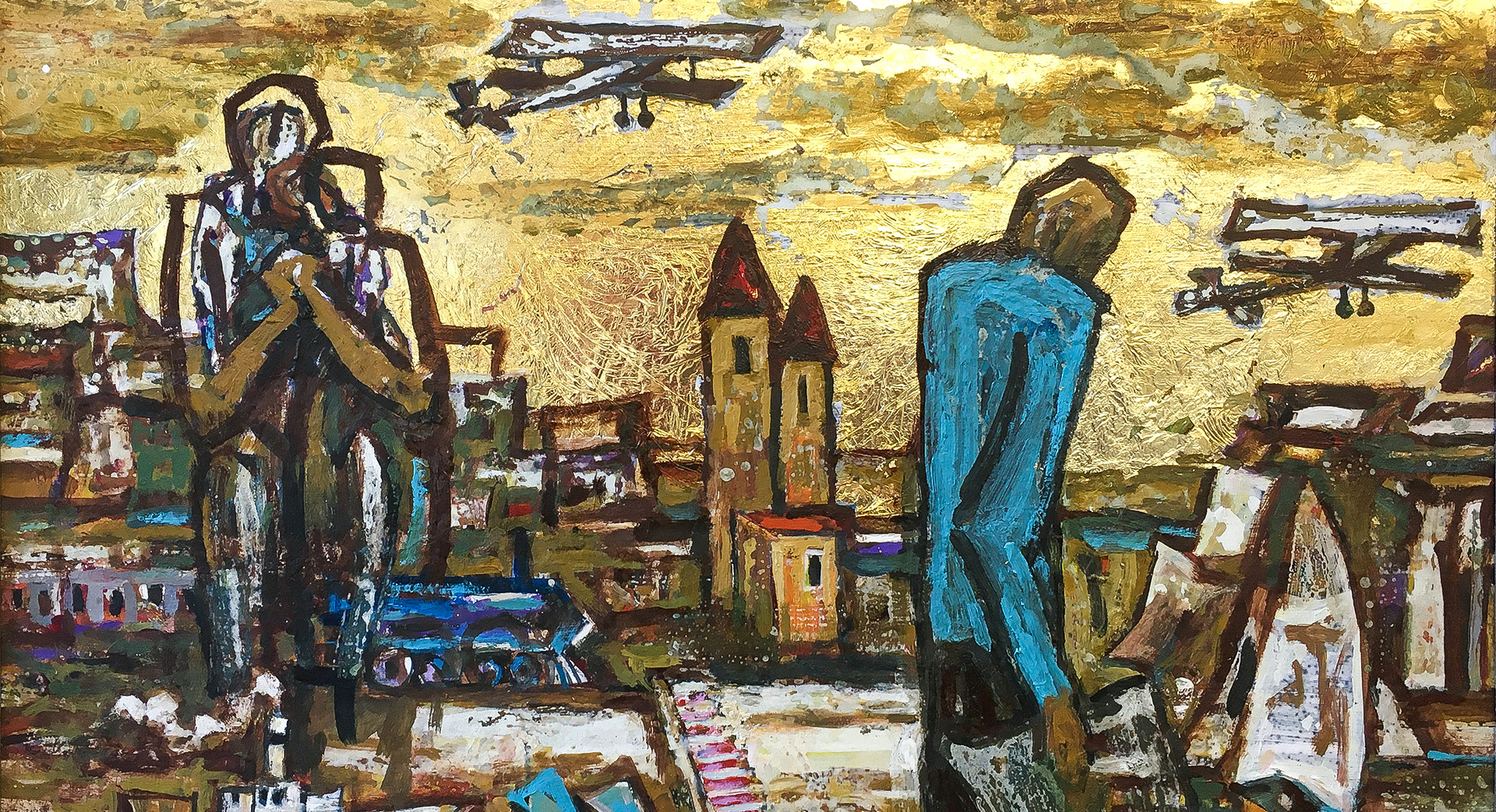80x60cm farost, olaj, aranyfüst, maratás